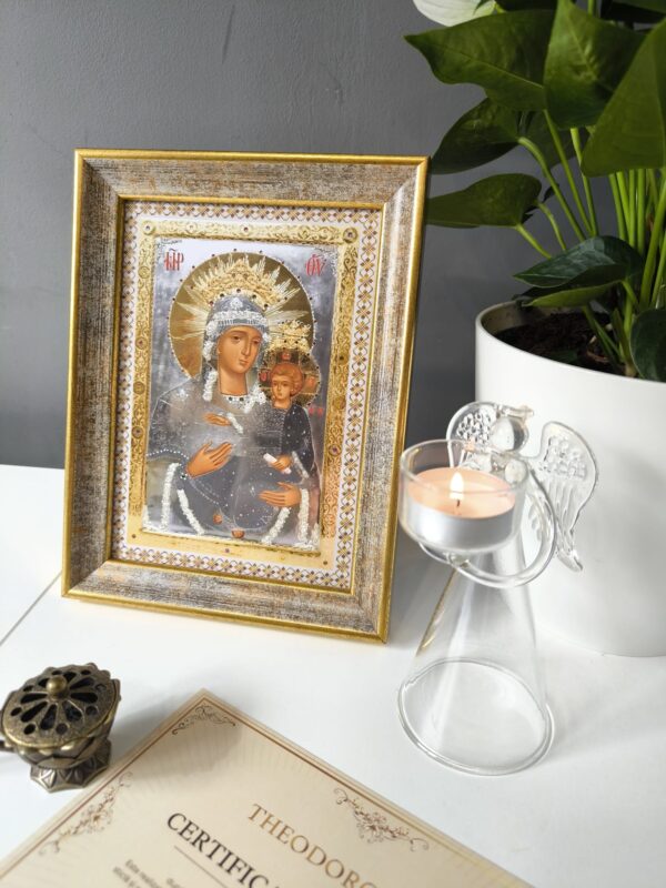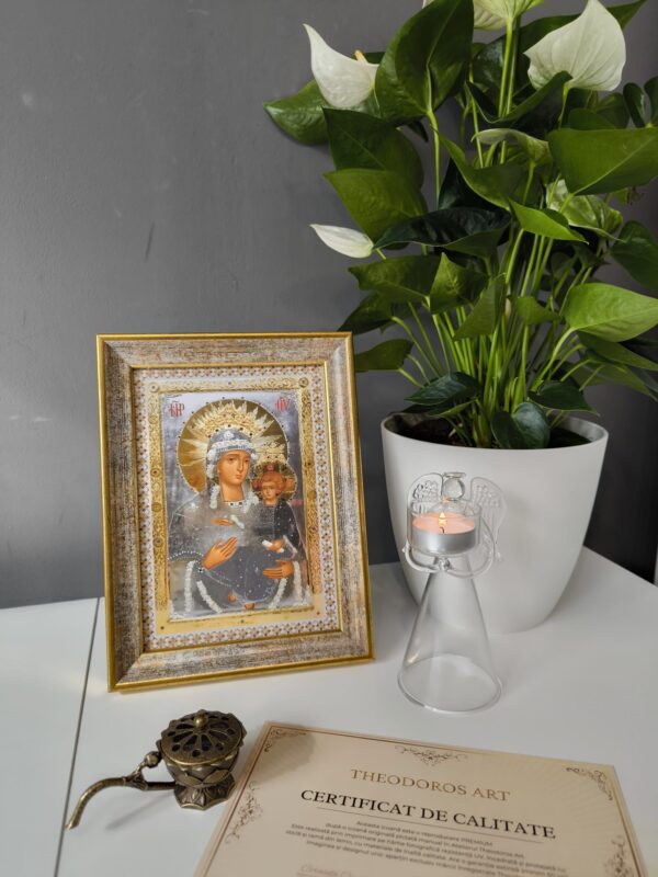 Icoana este realizată atât cu suport de birou, cât și pentru a fi așezată pe perete. Aduce binecuvântare și har în casa și sufletul celui ce o cinstește.