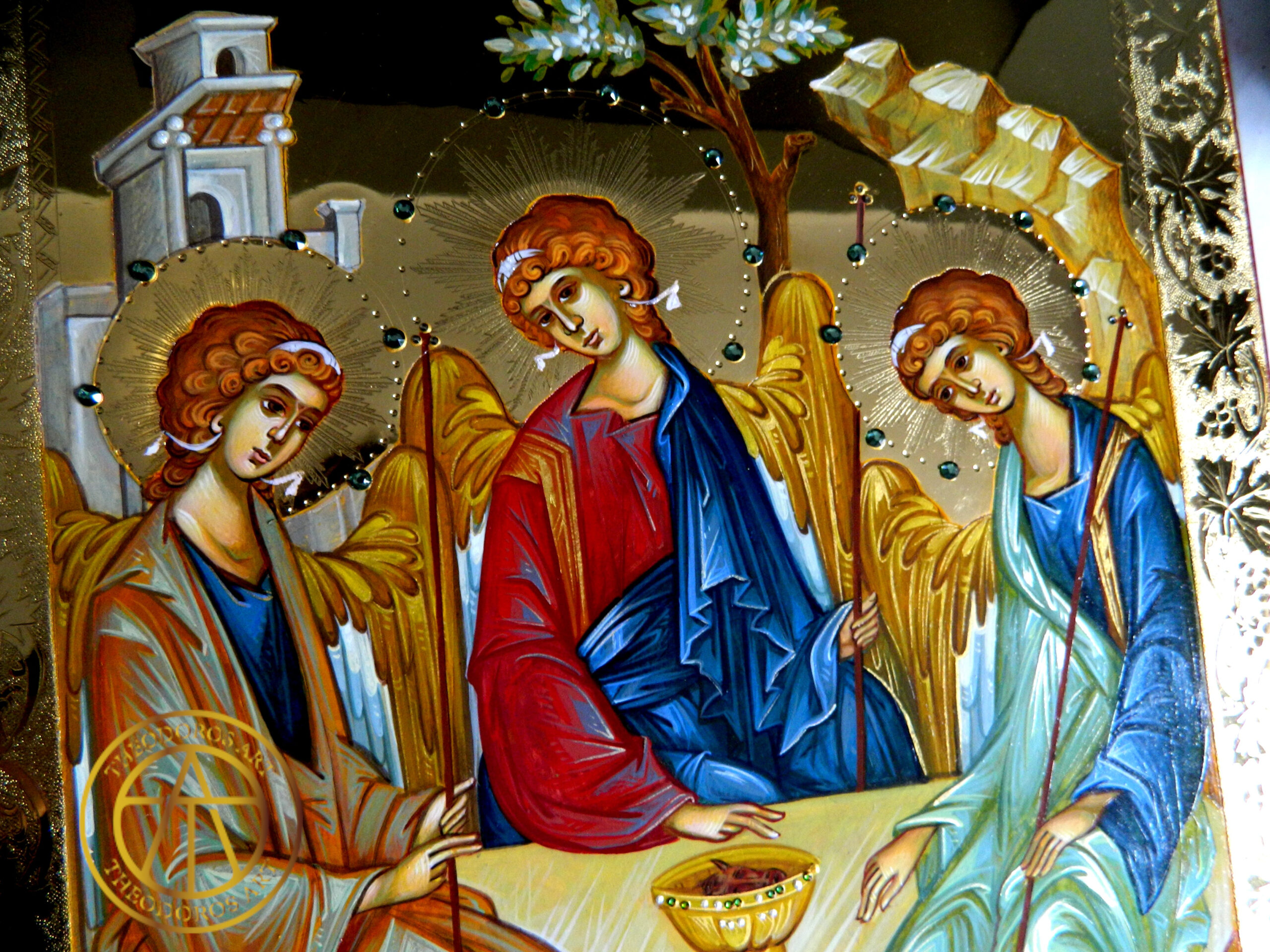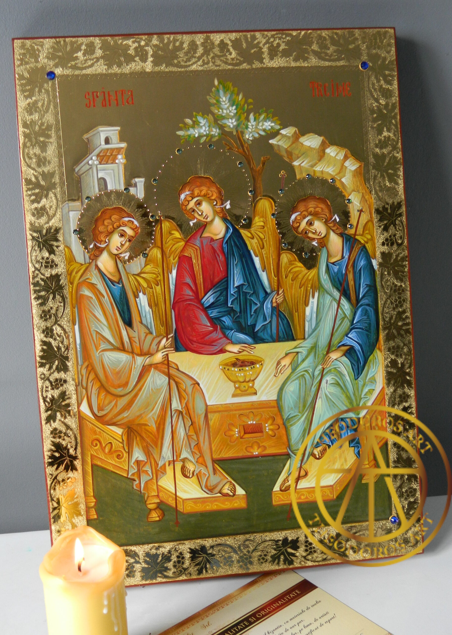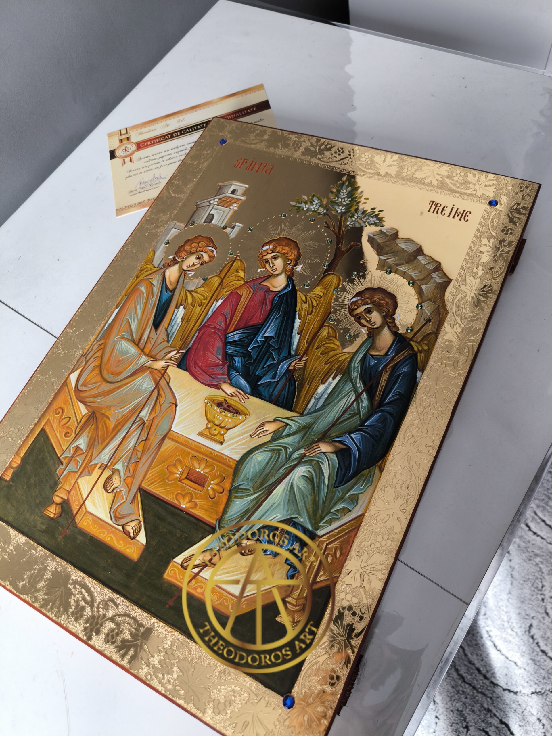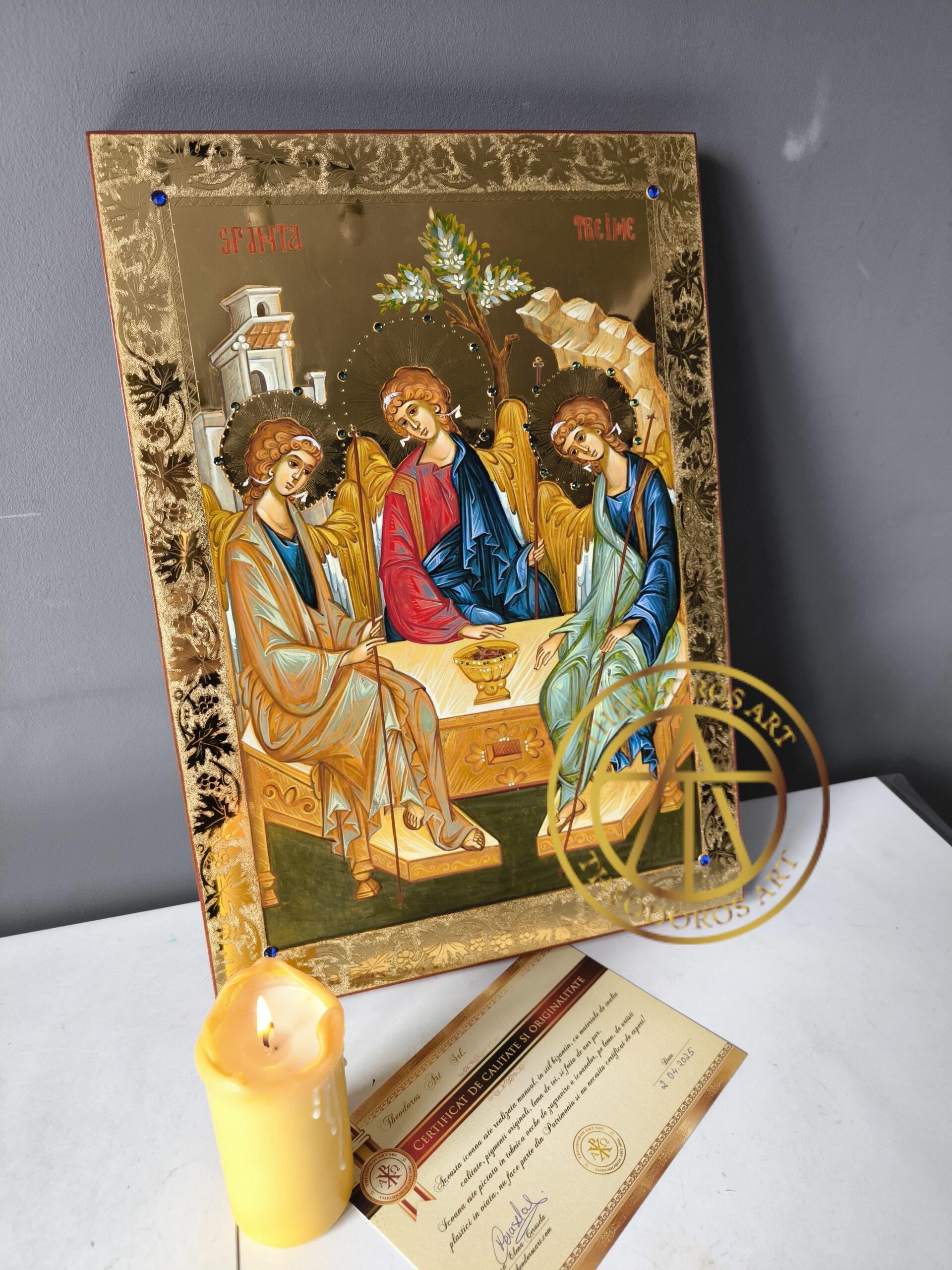 Icoana Sfintei Treimi este una dintre cele mai profunde reprezentări teologice din iconografia ortodoxă. Inspirată din vedenia lui Avraam din Vechiul Testament (Facerea 18), în care Dumnezeu i se arată sub chipul a trei îngeri, icoana exprimă taina iubirii dintre Tatăl, Fiul și Duhul Sfânt – un Dumnezeu în trei Persoane, dar una în ființă.